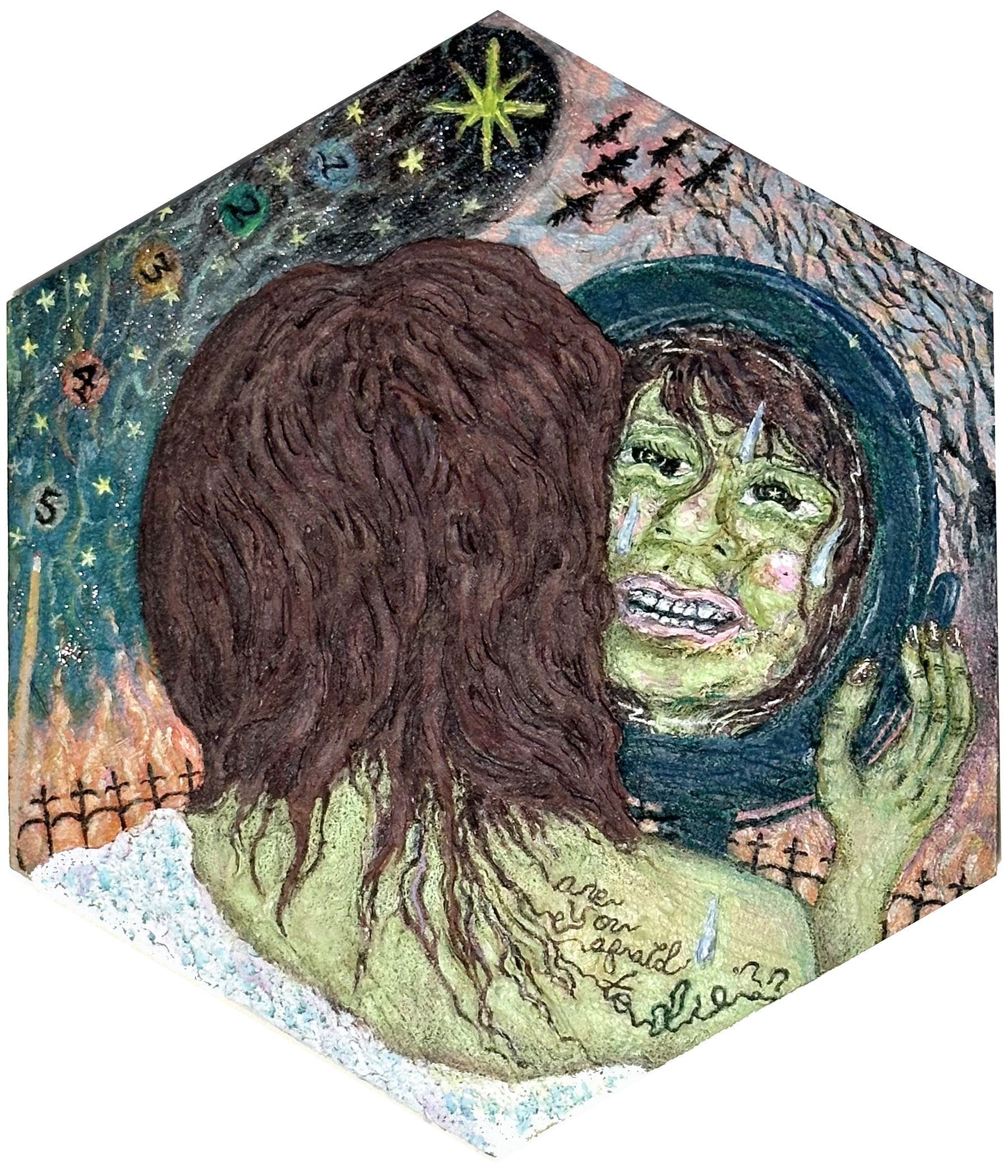 mixed media on wood panel, 12" x 14"