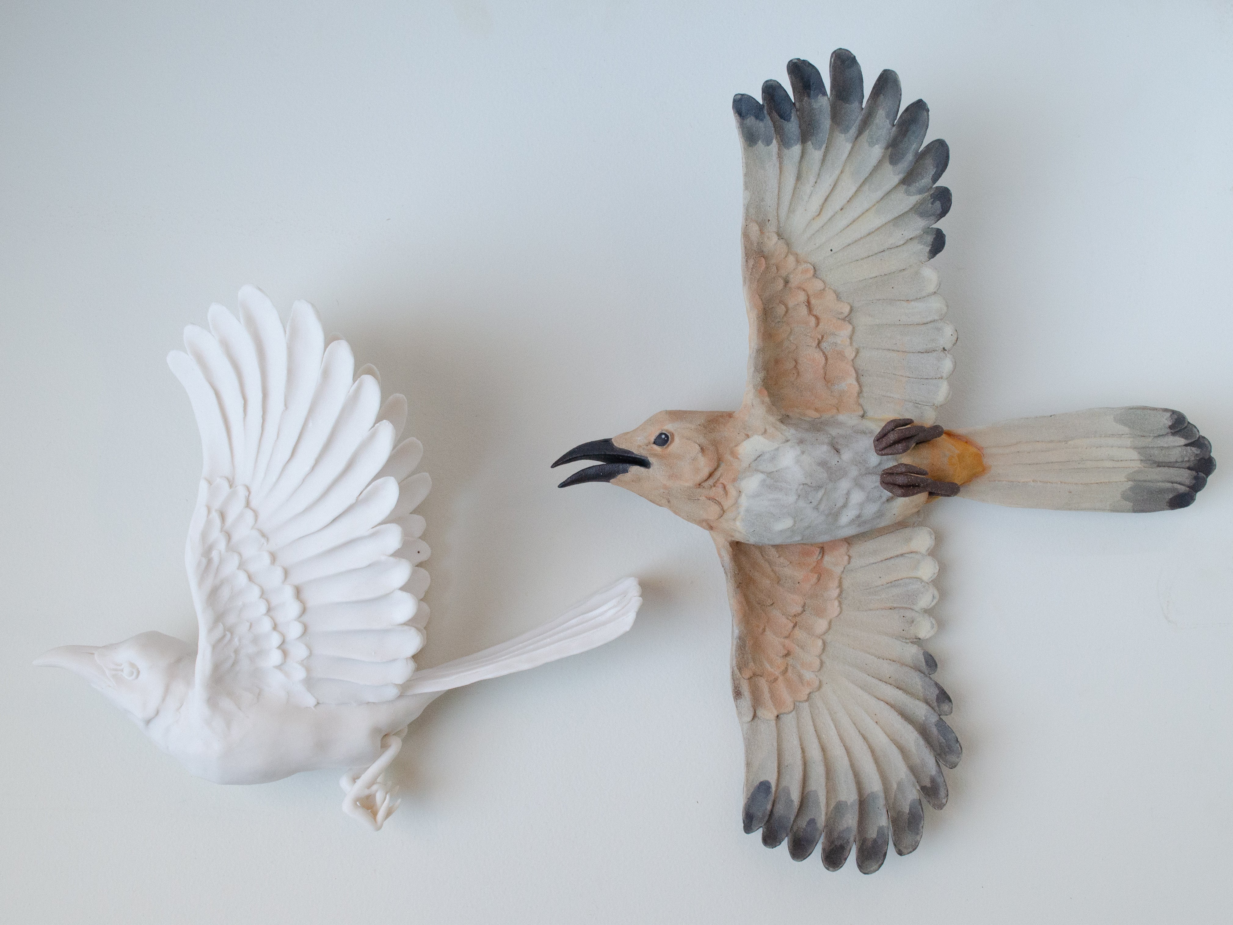 Female: porcelain; Male: stoneware, underglaze, slip