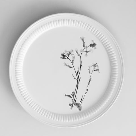 Abraham Joshua Heschel said that, "Indifference to the sublime wonder of living is the root of sin" & it is in response of this that the elemental approach in my work reflects simpler methodologies and examines a more direct and intimate relationship with our environment. The renderings, each one unique and handmade from collected source materials, are drawn on repurposed food tins and platters and are reflective of nature studies and botanical drawing of old masters. The result of which reflects the use methodical mark making to create of a sense of authentic knowing, much like a shared meal affords a level of intimacy between companions.