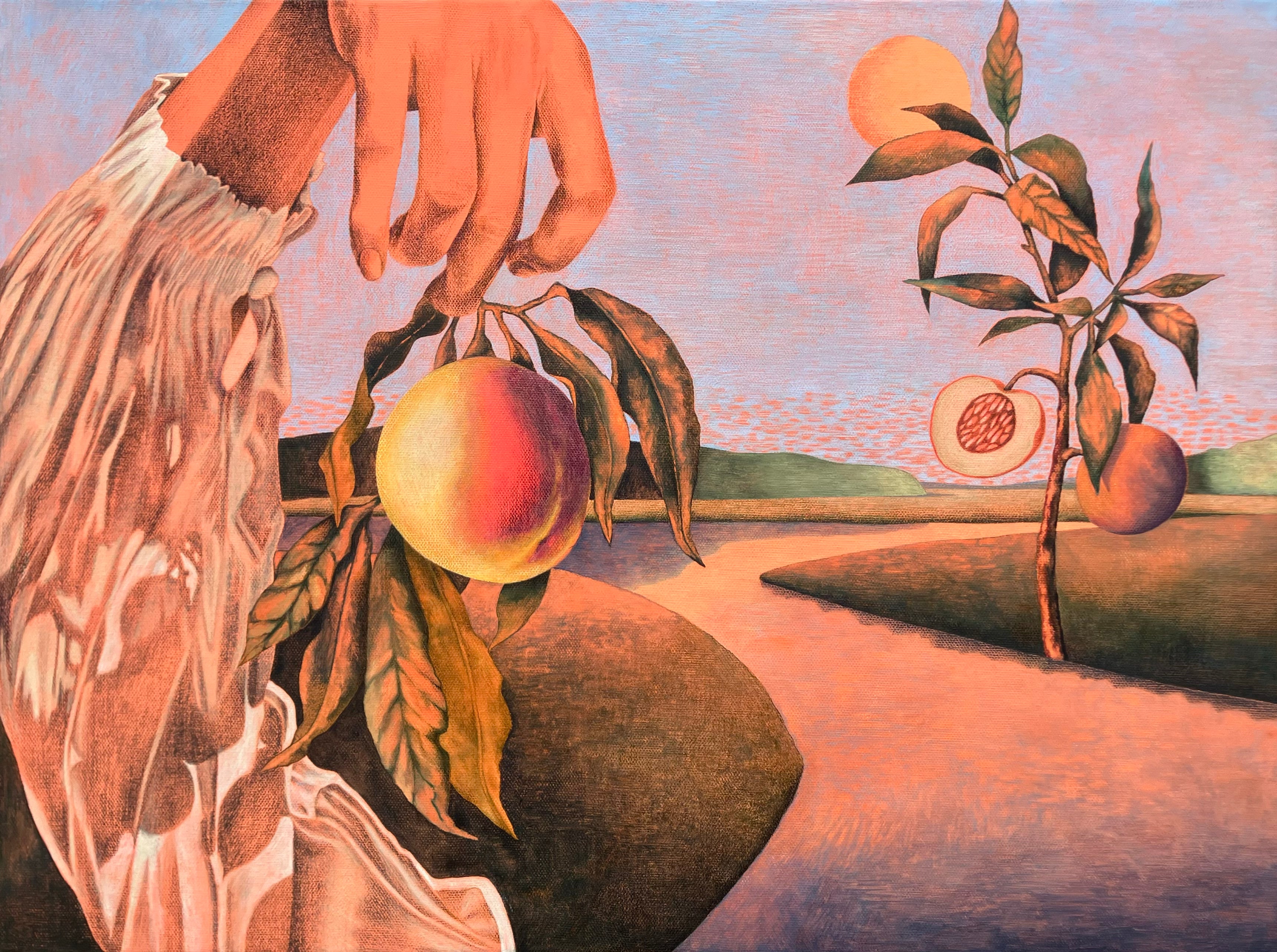 Watercolor, gouache, and colored pencil on canvas, 18"x24"