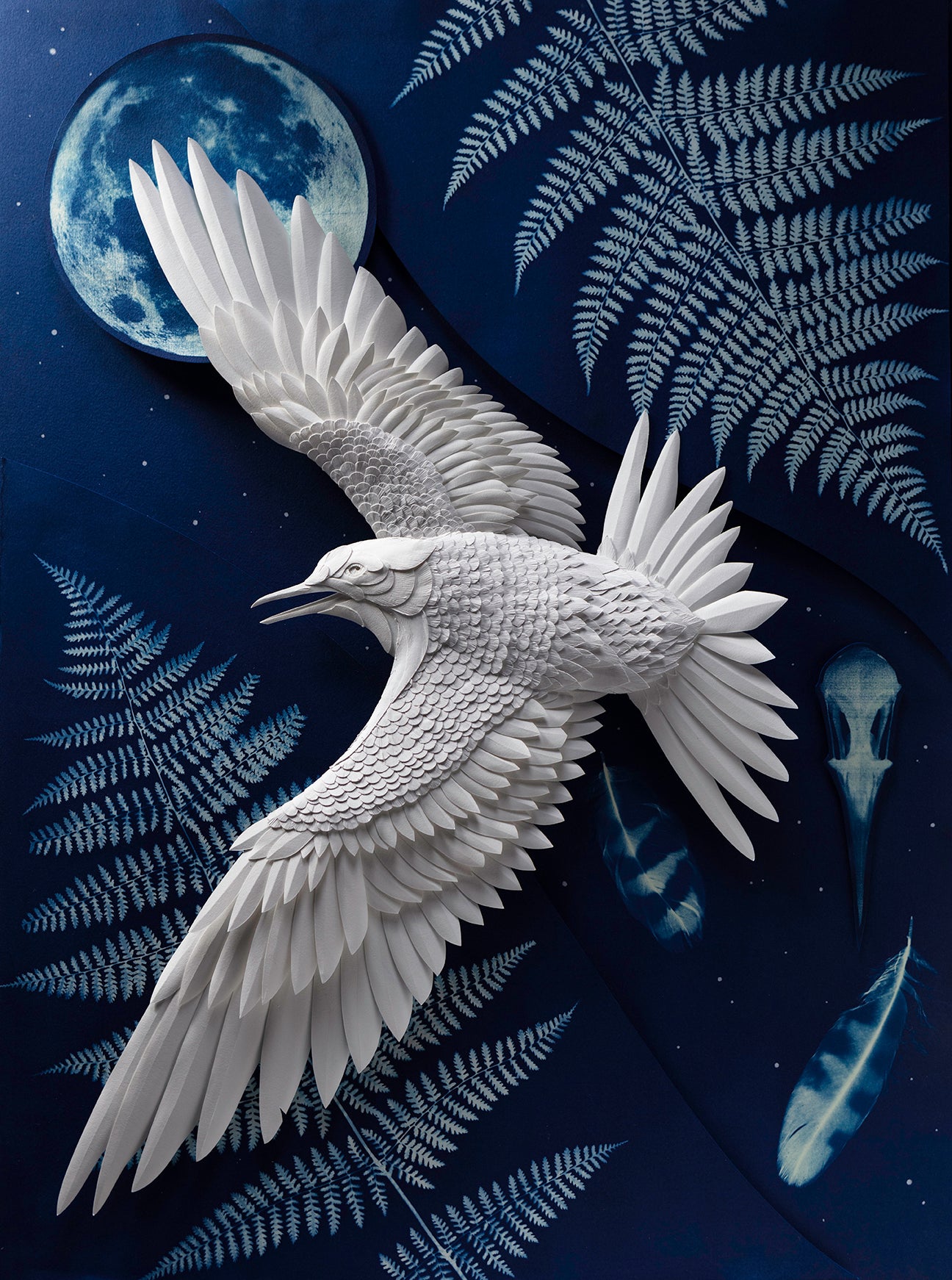18" x 24", Paper Sculpture and Cyanotype