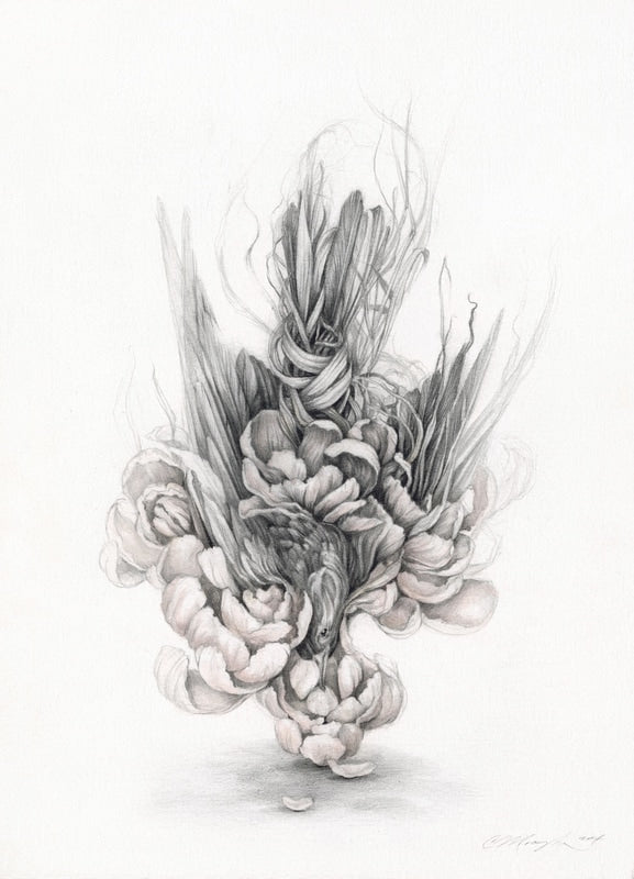Christina Mrozik takes an introspective approach to her pieces. Her inspiration comes from exploring the human experience and looking inward as a means of making sense of the world that surrounds you. The fragility and strength of the individual are depicted through delicate, metaphorical studies. Mrozik, originally from Grand Rapids, MI, has had two previous feature shows at Antler Gallery since moving to Portland and has become an integral, beloved, member of the thriving Portland art community.